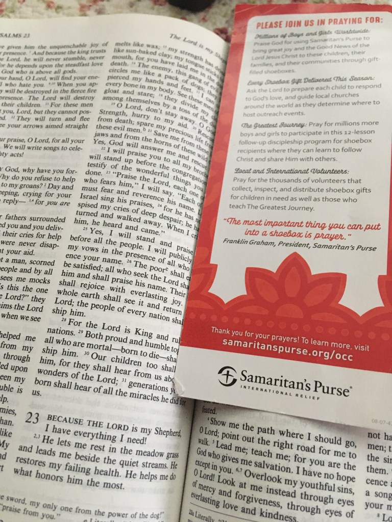 She opened to Psalm 23 and read… “Because the Lord is my Shepherd, I have everything I need!