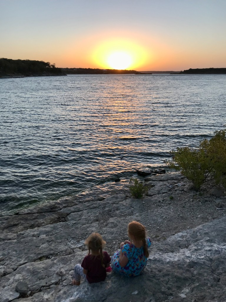 With the sun moving back south, we are enjoying sunsets at our favorite place on Lake Belton again. These two are always up for a run to the lake to watch the sun set with mommy!❤️