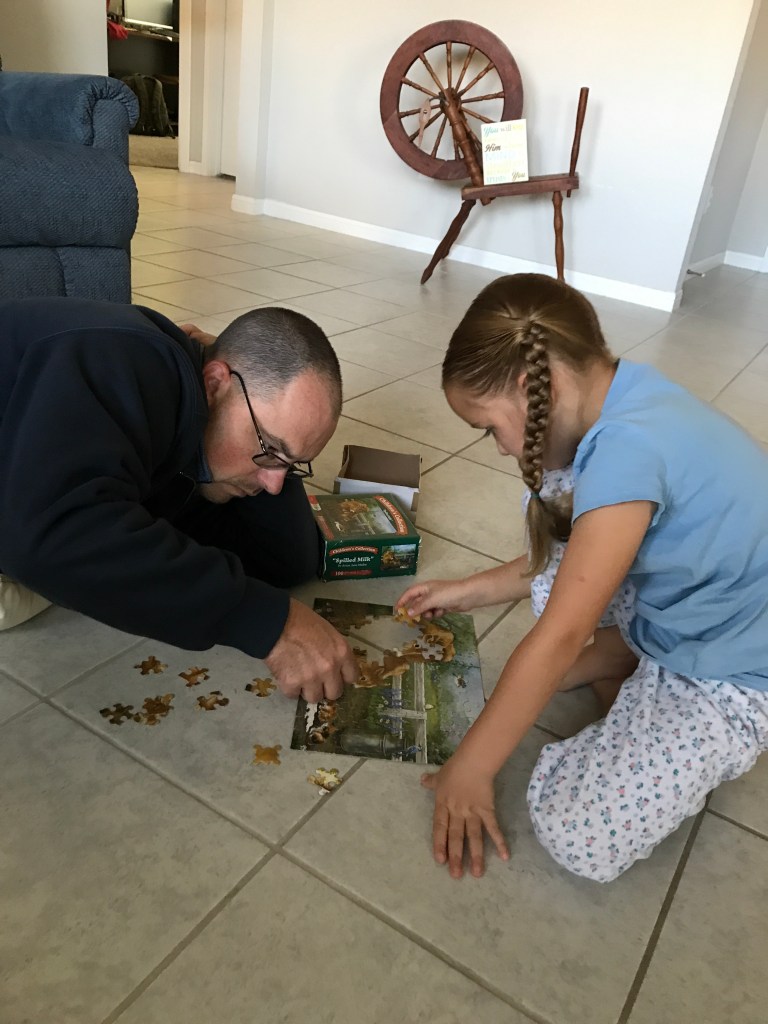 Some quieter evenings with Daddy home…The girls love doing puzzles and games with Daddy!