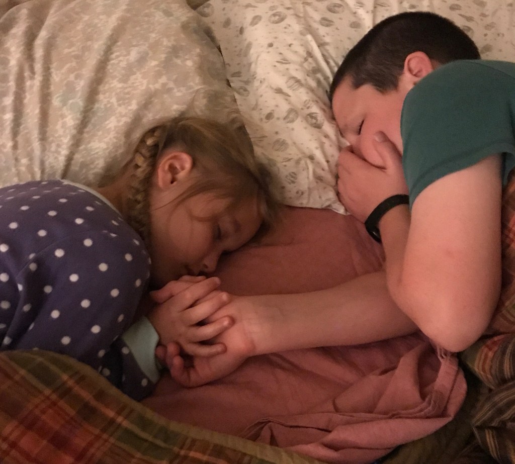 Fell asleep, waiting for mommy…. His little sisters are one of his greatest comforts and joys in life.