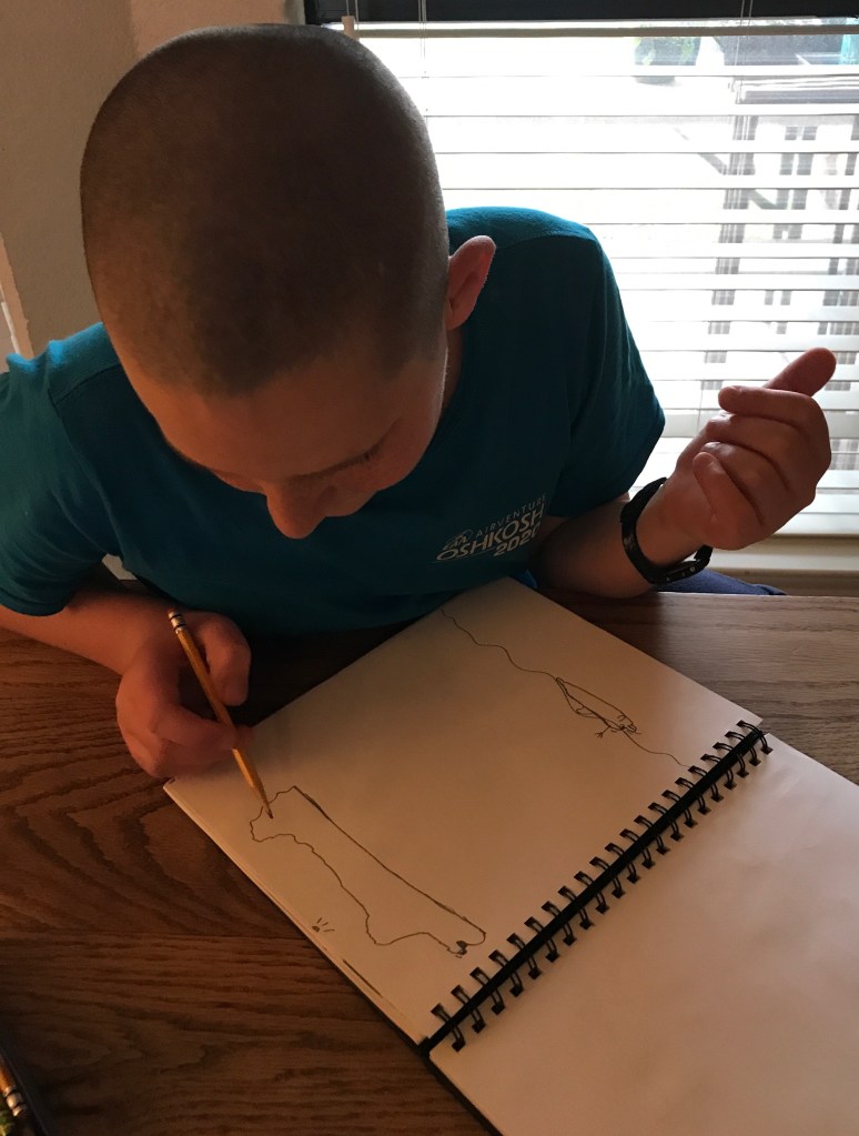 A Cedar Waxwing, drawn by Peter… We have many of them here in the winter…Peter was fascinated by them.
