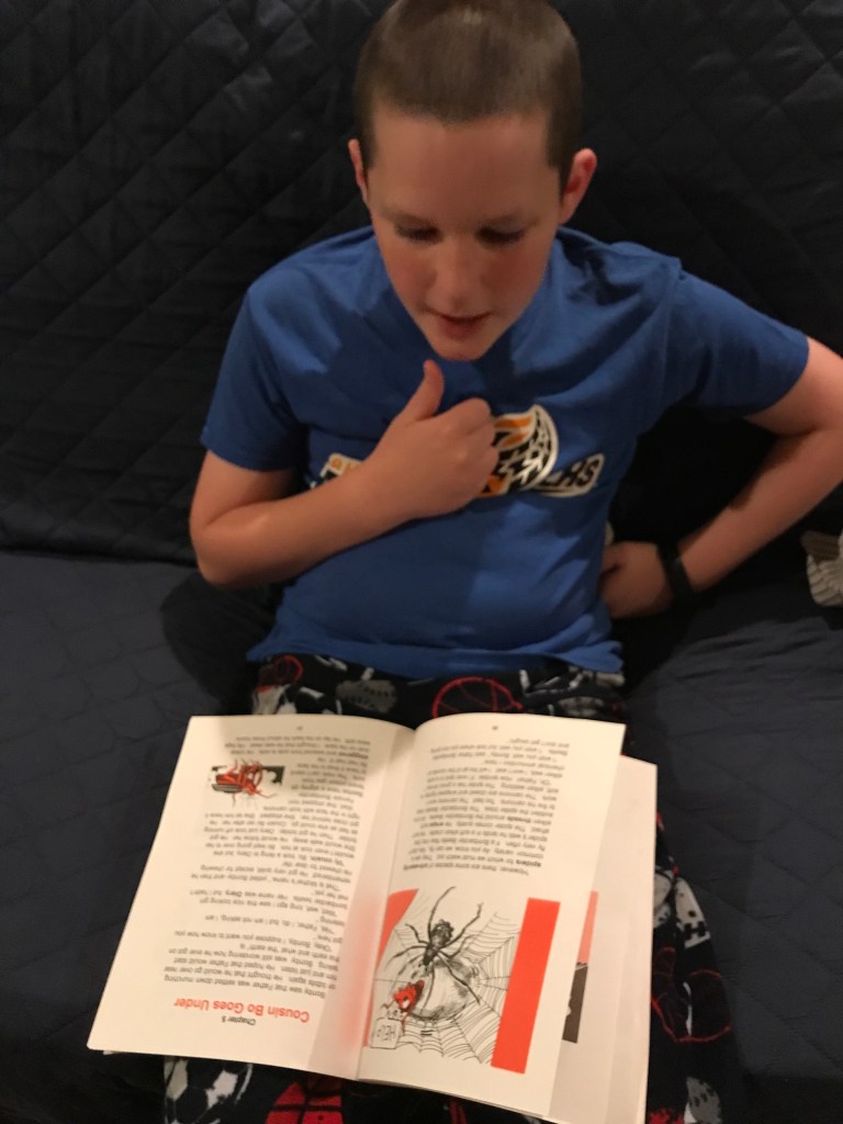 We are always thankful when he is interested enough in a subject to try to read about it. Lately his fascination is the bombardier beetle!