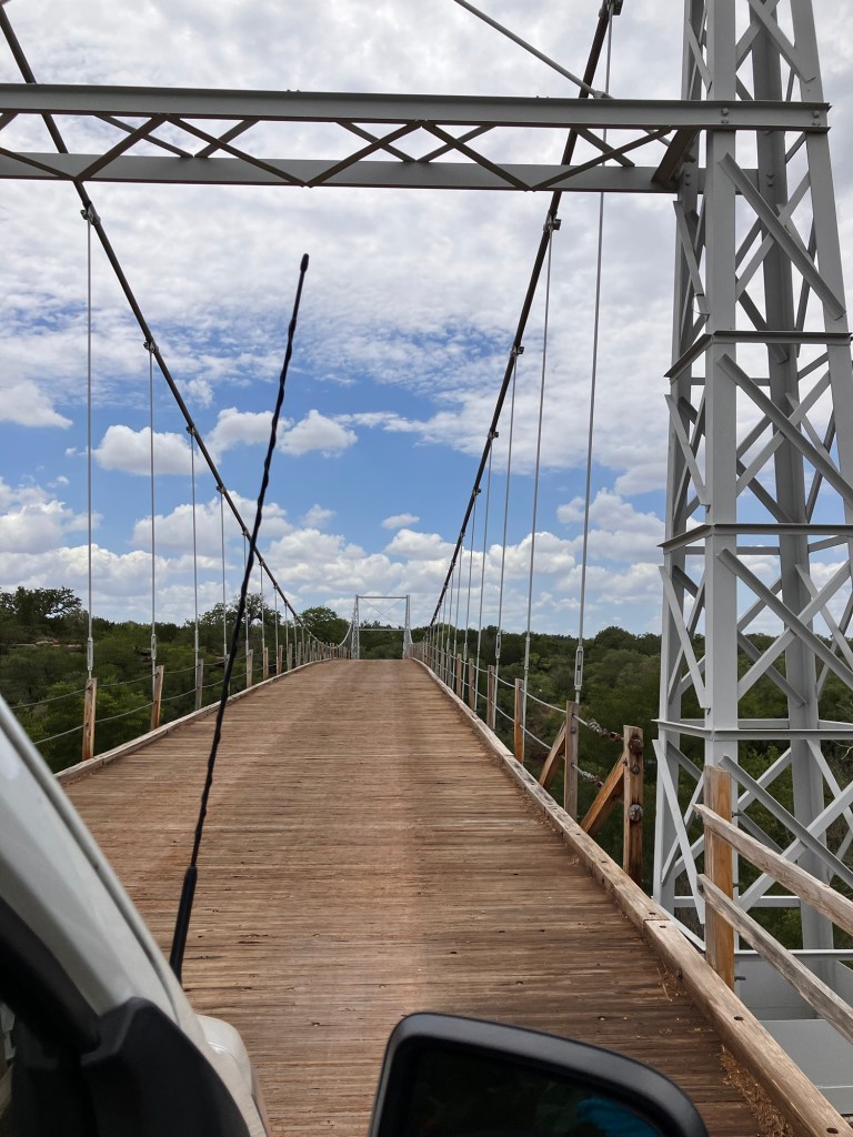 A suspension bridge over the Colorado River…it doesn’t feel safe but must be, it has been here awhile.😊