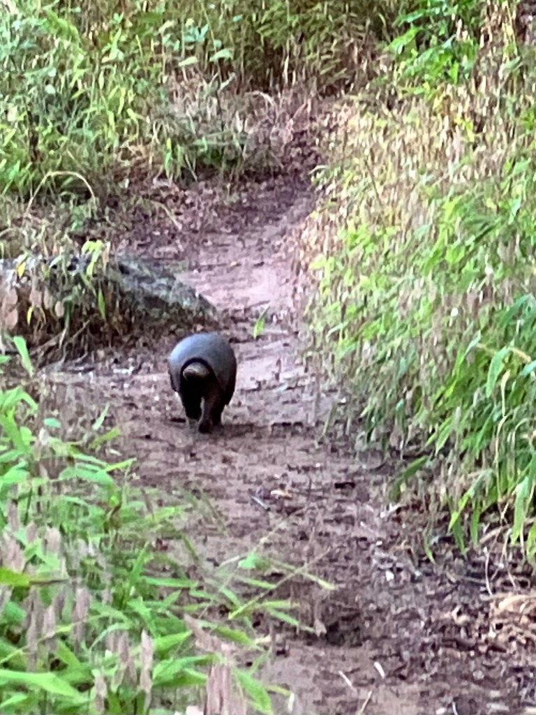 An armadillo meandering down the path ahead of us…