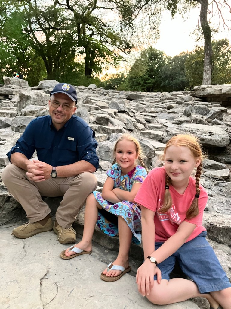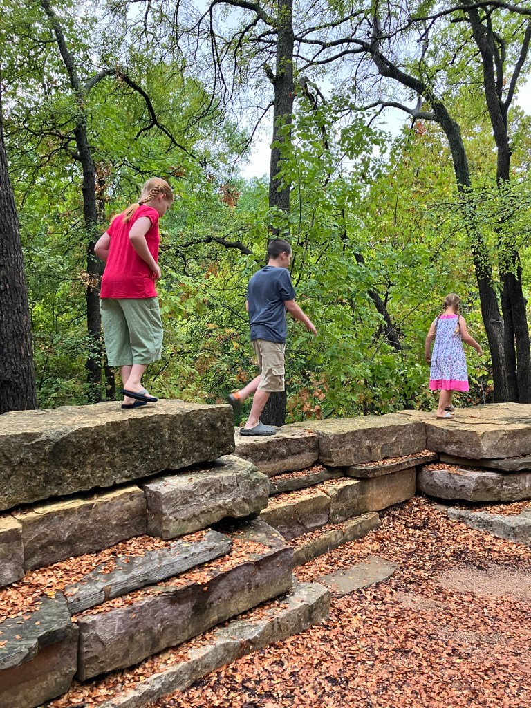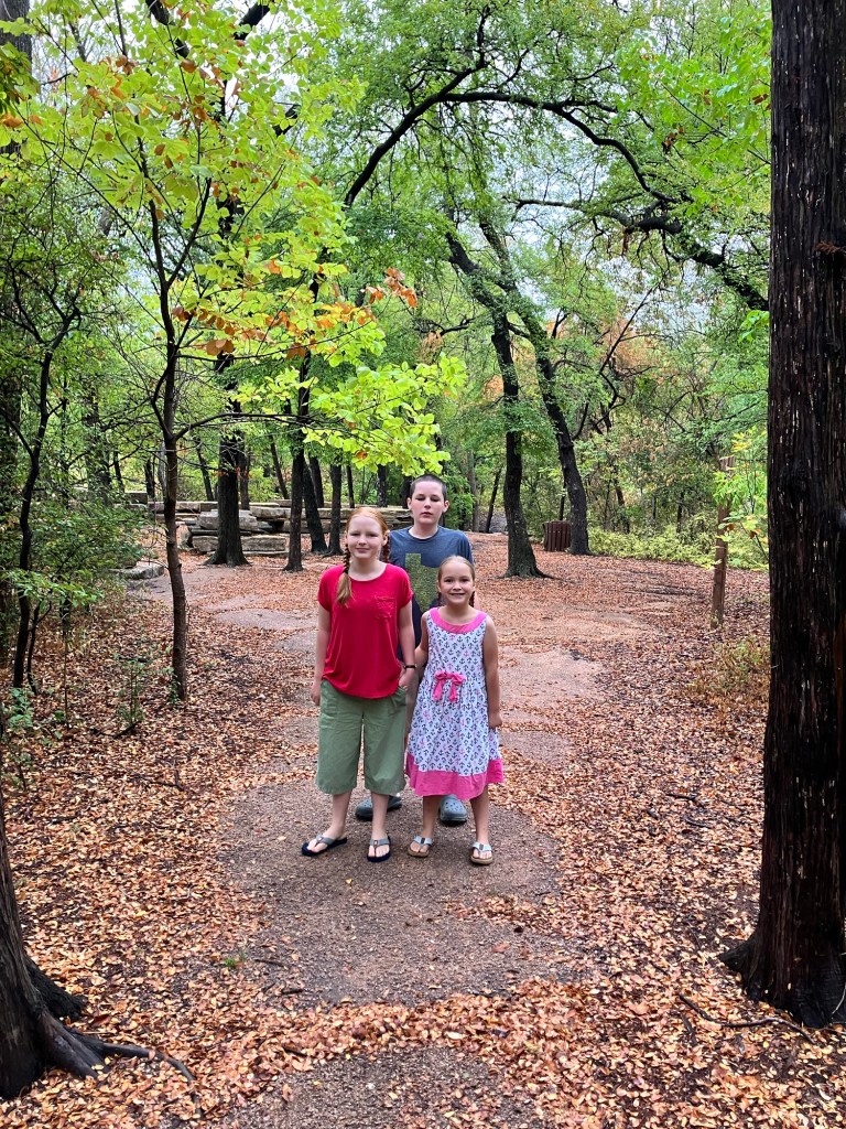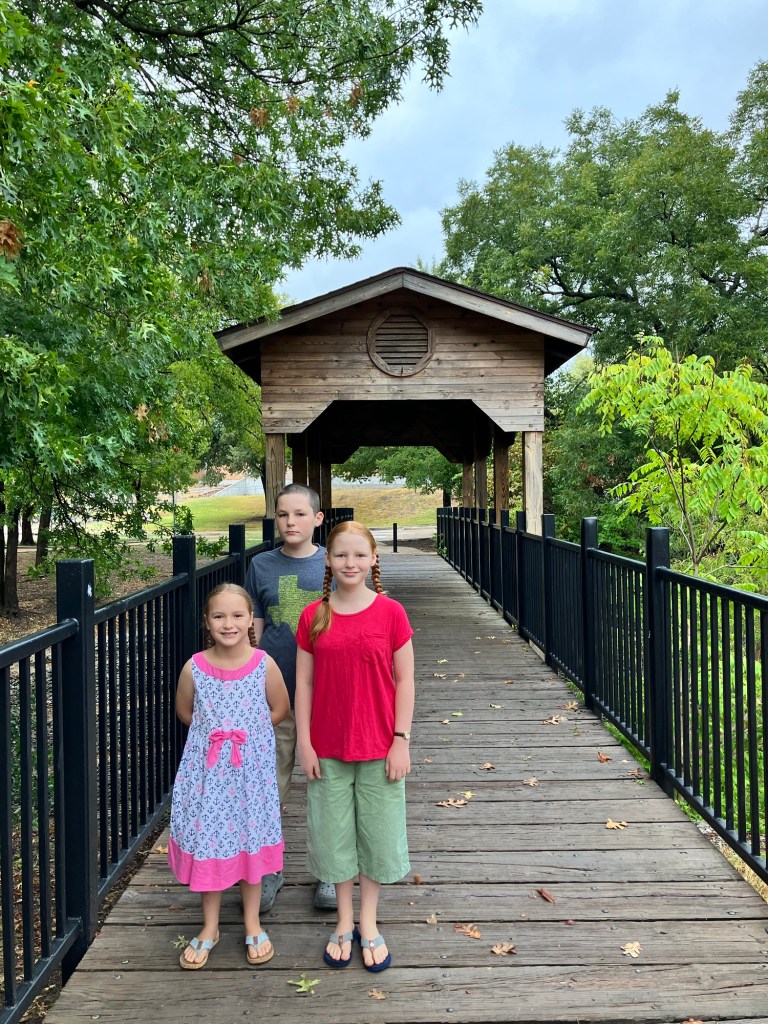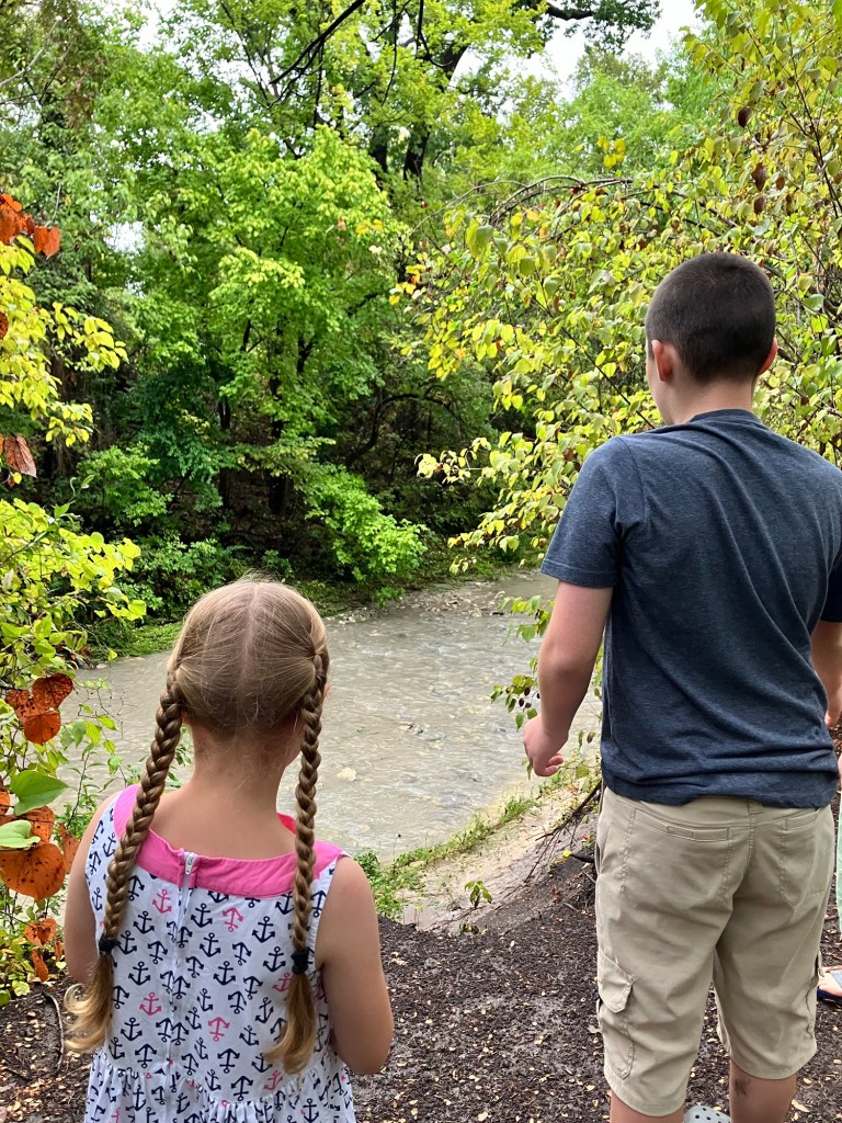 The creek near our housing development, there is a walking trail and Peter can throw sticks and look for snakes and fish and crayfish, with his “little sisters”.