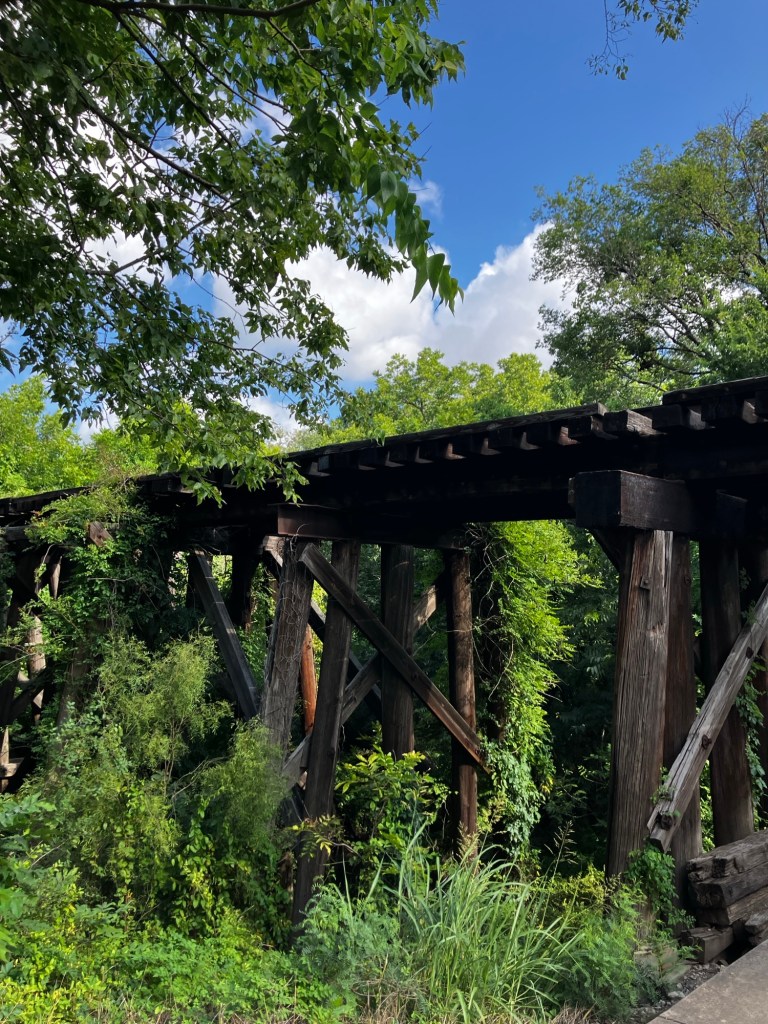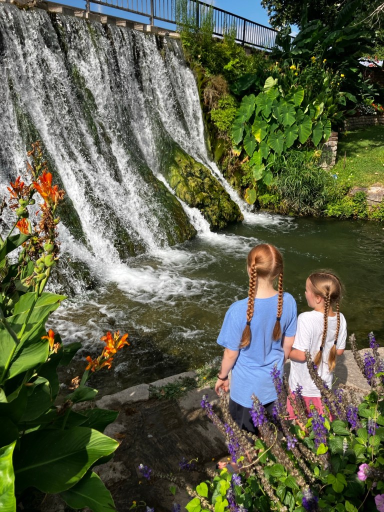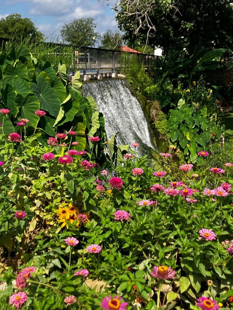 There are trails and a spring fed lake at the city park. Waterfalls, flowers and a creek, shaded by large sycamore trees.